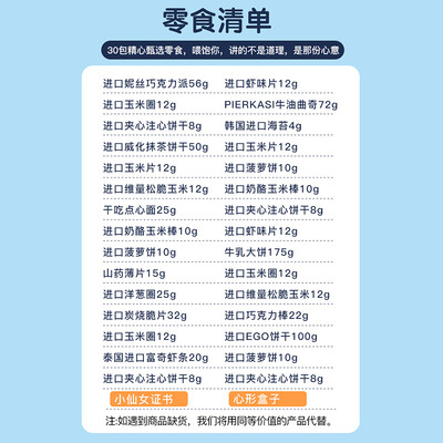 采用卡通箱装设计,呆萌可爱,轻松捕获小仙女芳心。内置多种口味零食,满足多种口味需求,方便和朋友分享。