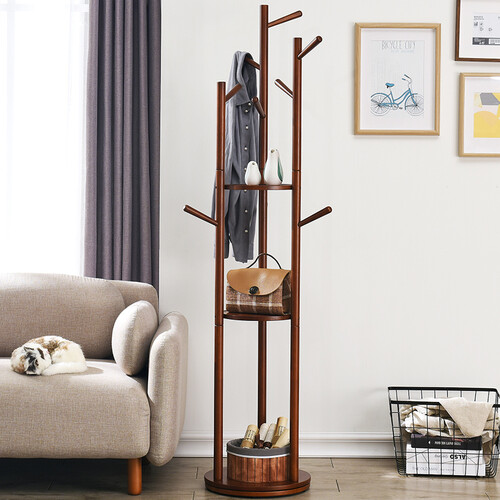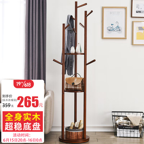 家逸 实木多功能旋转衣帽架