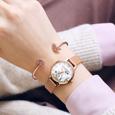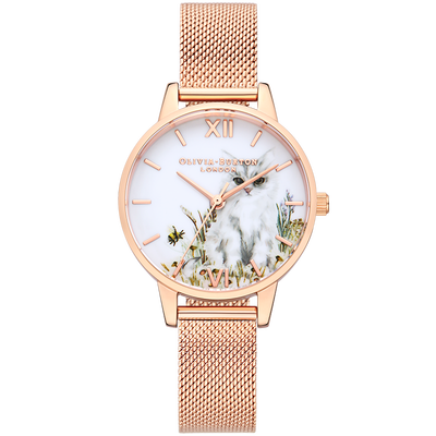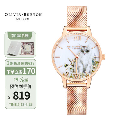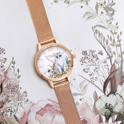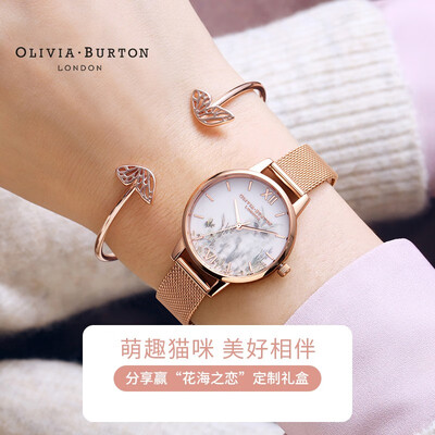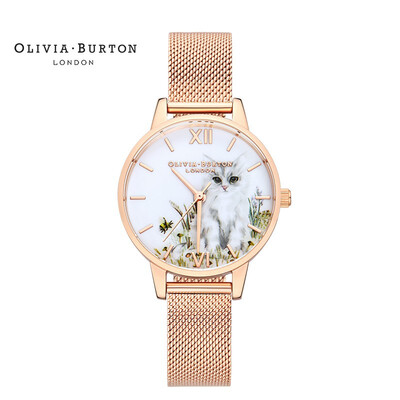 基础的圆形表盘,以萌趣的猫咪图案做装饰,增加些许甜美气息。矿物质玻璃制作而成的镜面,清晰透彻,抗造耐磨。