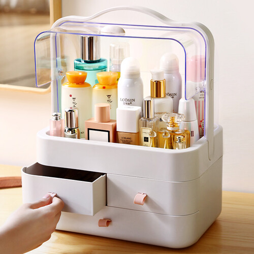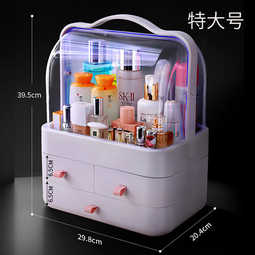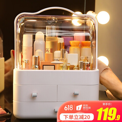 加装透明防尘盖减少灰尘,防止水渍进入。采用手提人性化设计,任性挪动,堪称补妆利器,采用双向开合,避免凌乱,取用更加方便。