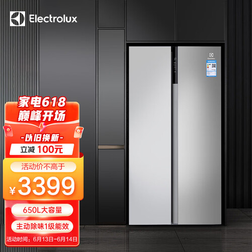 伊莱克斯 除味对开门冰箱