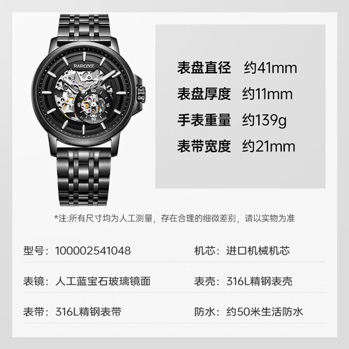 雷诺 全镂空钢带 圆盘腕表