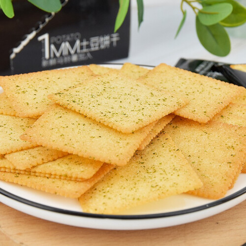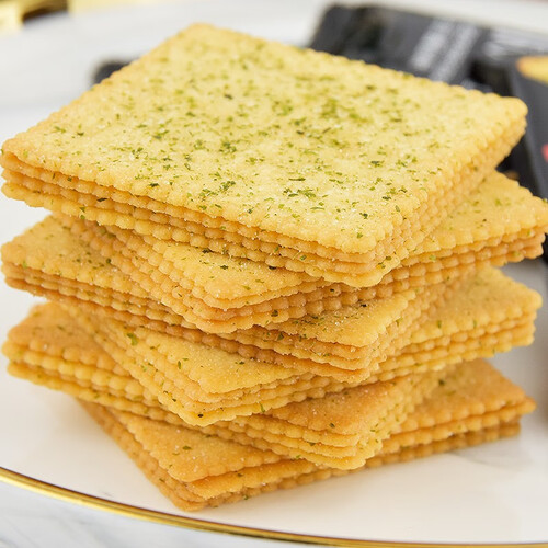 采用创新的4温区上下高低温烘烤,饼干均匀受热,薄至1mm的厚度吃起来口口酥脆,入口带着日式酱油的鲜咸味,好吃不腻。