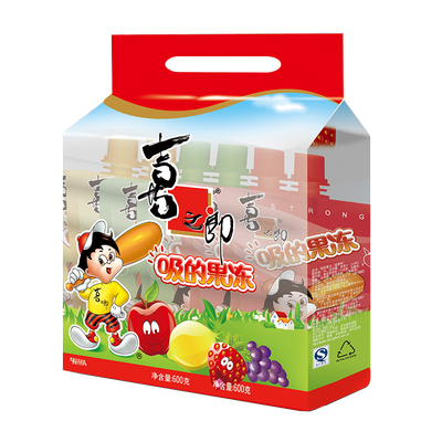 苹果香橙荔枝等多重水果味,口感爽滑。精选原料,美味健康好吃不胖。此外,防吞盖设计,轻松一吸就能吃到美味。