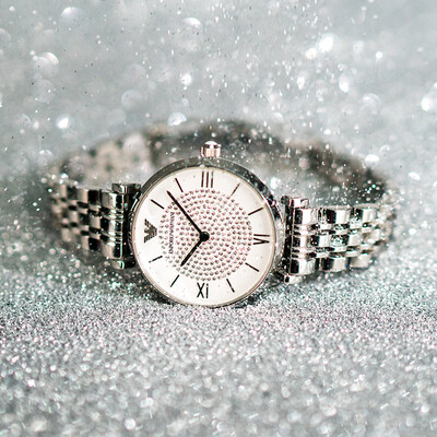 阿玛尼 满天星钢带石英腕表