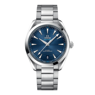 幽深的蓝色表盘上,布满了水平“柚木”纹理,看上去很独特,颇具细节感。配上银色的精钢表带,让腕表更具质感。