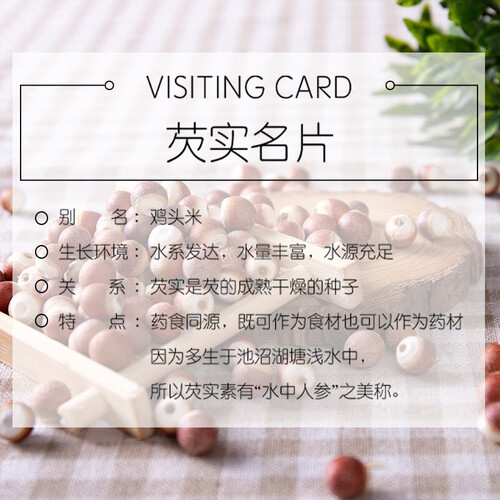 甄选天然芡实,味道质朴,给您生活的本真平淡味道。芡实颗粒完整,干净易存储,生食口感香脆,熟食口感粉糯,适合煲汤煮粥。