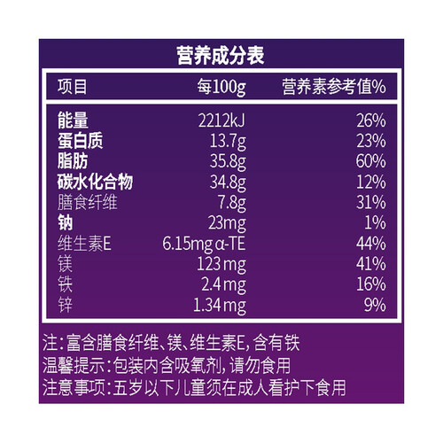 采用了独立的包装设计,平常可以随身携带,随时随地享用坚果。每种原料都经过了严苛甄选,只为保证品质,让人吃的更加安心。