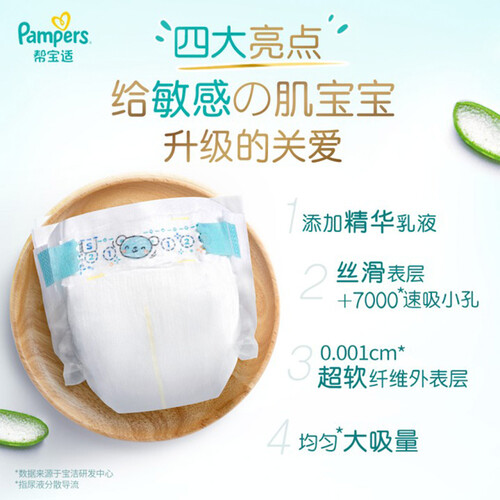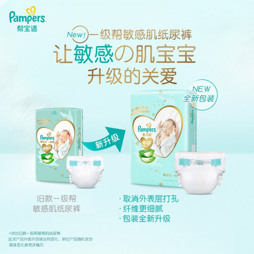 这款帮宝适敏感肌纸尿裤,添加美国进口天然芦荟精华,滋润宝宝的小屁屁还能保湿,呵护敏感肌肤。亲肤透气,穿着舒适不闷。