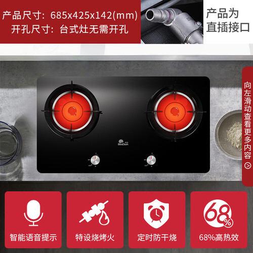 无焰燃烧,减少炭黑产生,保障使用者的健康与安全。红外线猛火将火力加速渗透食材,烹饪够火候够味道,为你的厨艺加分。