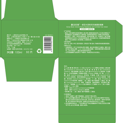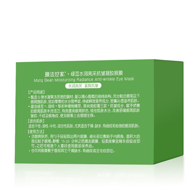 内含有绿豆提取物,不仅能够淡化眼周细纹,还带有一股清香,水溶性凝胶材质,舒适贴合不易掉落,清爽亲肤。