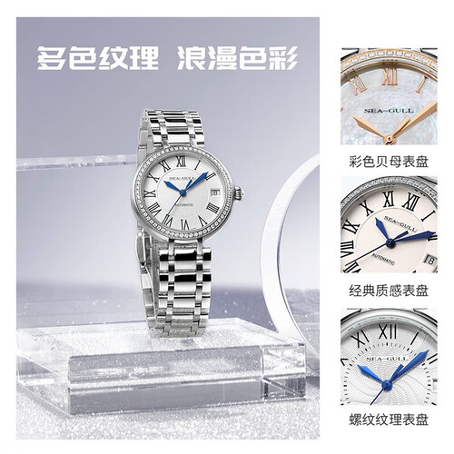 表盘钻石点缀,璀璨闪耀,更显得优雅有魅力。316L精钢表带,光感通透。28颗红宝石轴承,性能更加稳定耐磨损。