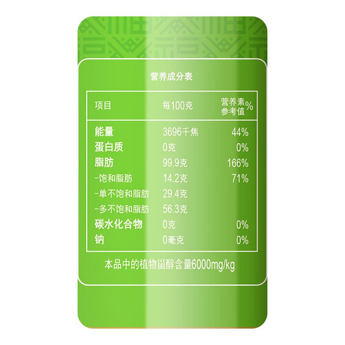 食用油中含有丰富的不饱和脂肪酸和维生素E,能满足一天的营养需求,食用更健康。搭载密封的防漏设计,存储更加方便。