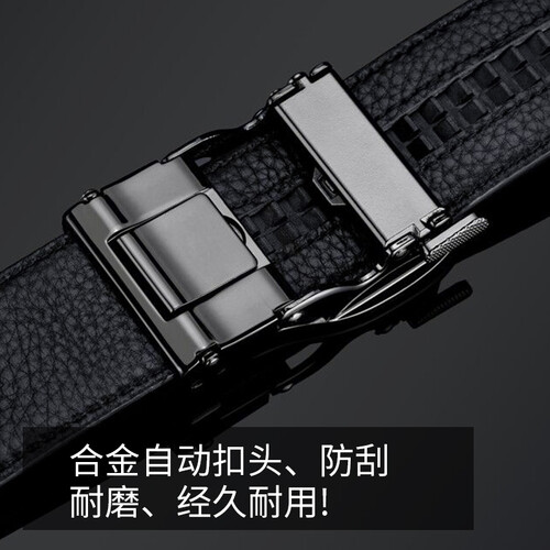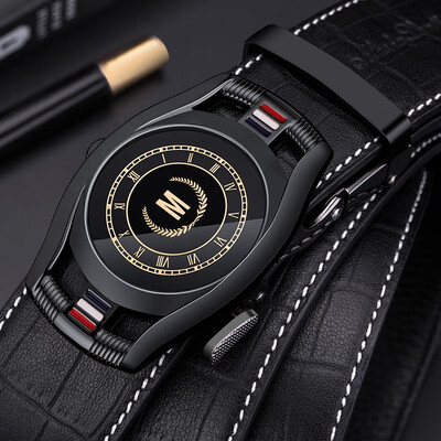 这款皮带扣头采用了镜面表盘样式,独特的设计整体潮流十足。同时皮质采用了坚韧耐磨的牛皮材料,耐磨好用,使用寿命长。