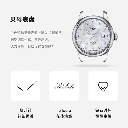 天梭 力洛克系列钢带机械女表