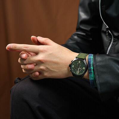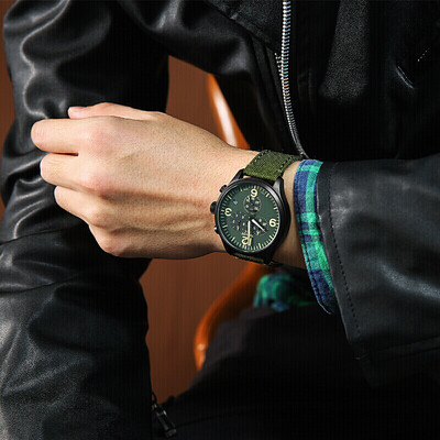 独特织物编织腕带,经过等距打孔,方便调节松紧。蓝宝石玻璃镜面,硬度仅次于钻石,佩戴防刮花。
