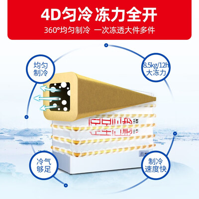 特设二级能效,2天约1度电,节能环保省电更省钱。更有4D匀冷技术,冻力全开,360°循环均匀制冷,一次轻松冻透大件多件。