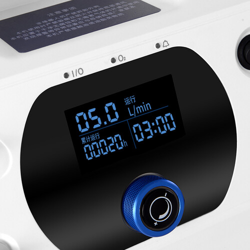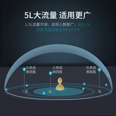 5L制氧机可以调节到3L左右,同样适用于1至3L制氧机人群。LCD数字显示屏,观看数值更清晰。五重过滤,保障氧气纯度。