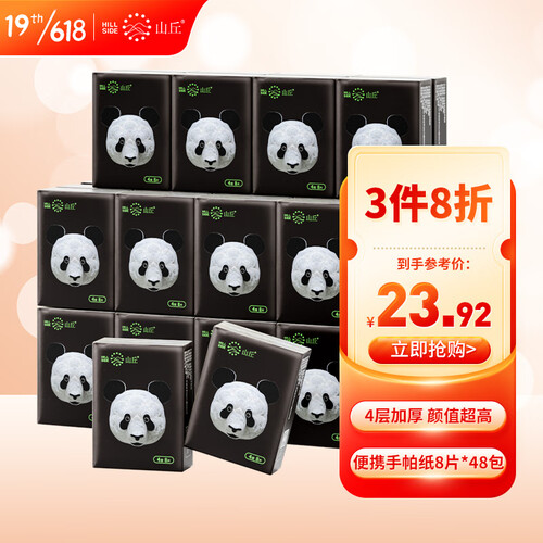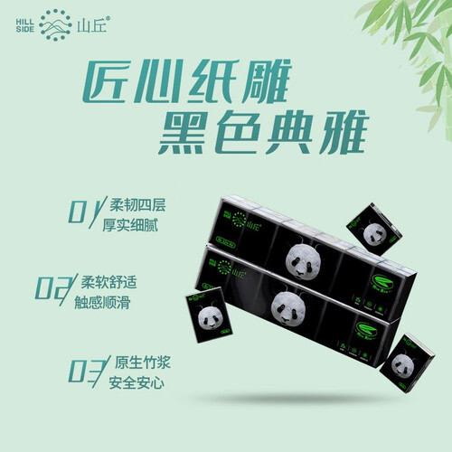 山丘 无漂白印花熊猫手帕纸