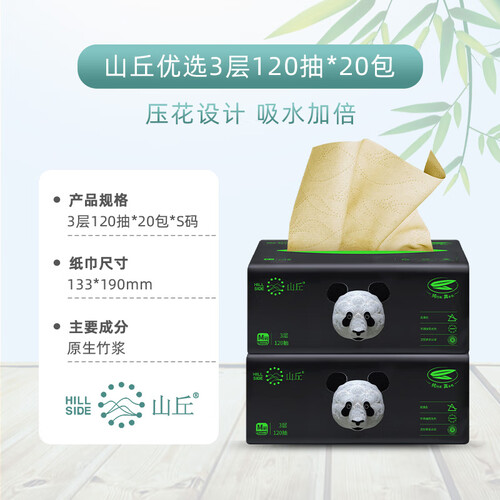 山丘 竹浆本色无漂白熊猫抽纸