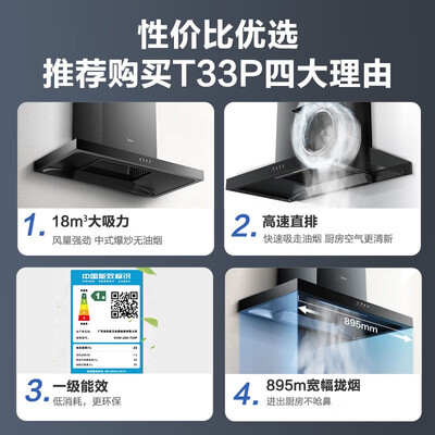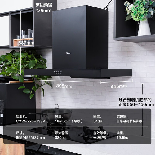 可隐藏式机身设计,给人视觉不突兀,有效增大了厨房使用空间。封闭式电机搭配高速离心叶轮,带来强大吸力,让厨房瞬间清新。