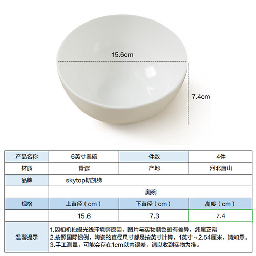 斯凯绨 无铅无镉骨瓷碗
