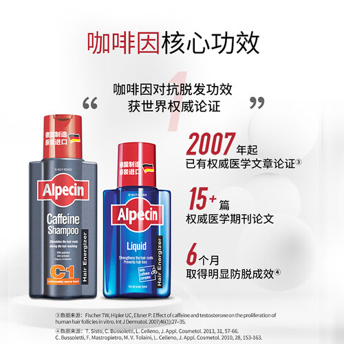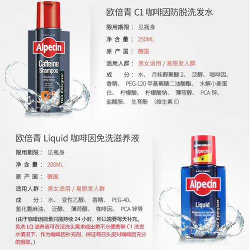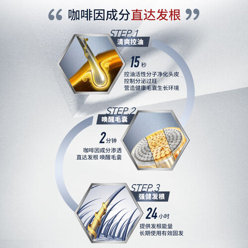 突破性先端配方设计,不含有软化剂无硅油成分,科学洗护,值得信赖。含咖啡因成分,可刺激毛囊从而提高增长速度,降低掉发几率。