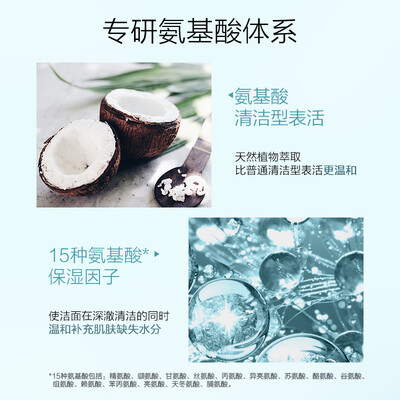 蕴含椰油酰,天然植物萃取,比普通清洁型表活更温和,适合所有肤质,护脸不伤肤。15种氨基酸保湿因子,在清洁的同时给肌肤补充水分。