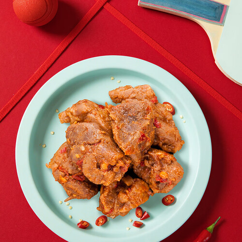 加入多种植物香料,经过卤制而成,入味更均匀,造就更香醇牛肉。选用体型肥壮、肌腱发达的黄牛为原材料,肉质更劲道。