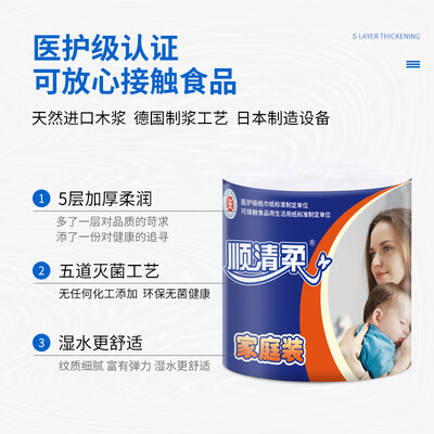 四层的加厚设计,纸巾加倍柔韧,湿水擦拭也不易破。纸质细腻柔软,触感亲肤不粗糙,为你带来舒适的擦拭体验。