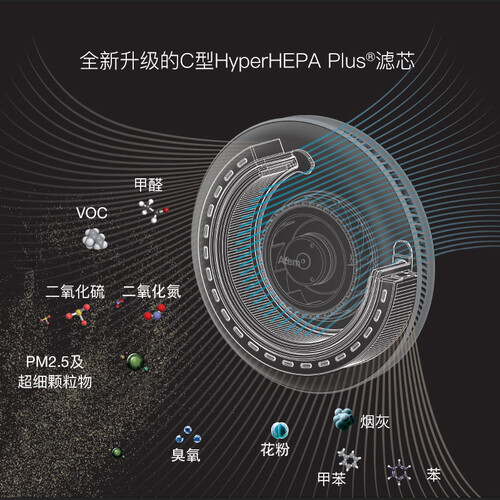 德国制造的C型结构滤芯,增大过滤面积,经久耐用;全新升级HEPA过滤技术,三层复合可过滤甲醛、苯和PM2.5、过敏原等。