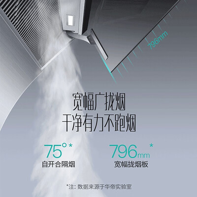 这款采用796mm宽幅拢烟板,可以牢牢锁住油烟,避免升腾扩散。搭载塑封电机,防水又耐热,清洗更安心。