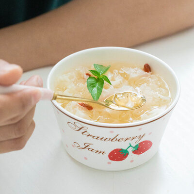 选用景德镇真骨瓷,制作精良,将餐具对着光源,可以清晰地看到光线透出来,非常清透自然,没有任何杂质混在其中。