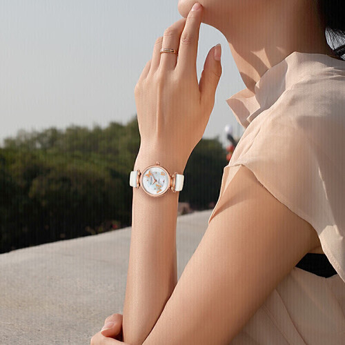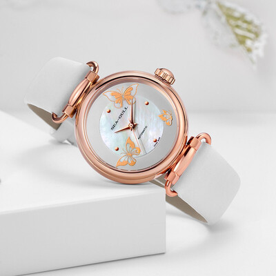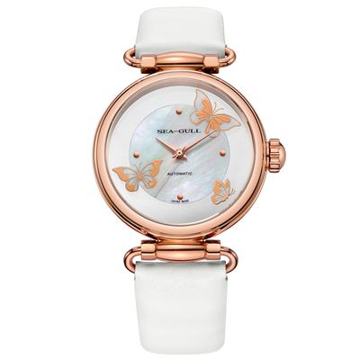 盘面饰以蝴蝶元素点缀,画面栩栩如生,释放出温柔知性魅力。绢带表身设计,经典不失时尚品位。