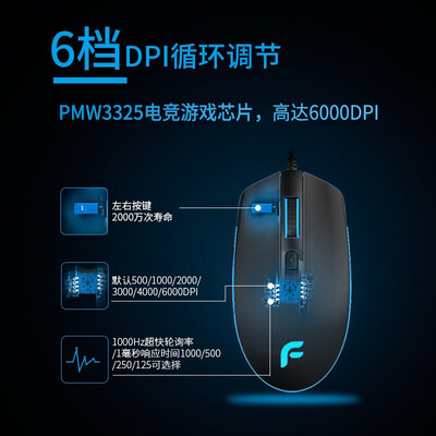 采用3325芯片传感技术,准确快速移动,游戏体验更畅快。一键开关灯效设计,夜间休闲,避免干扰,操作简单便捷。