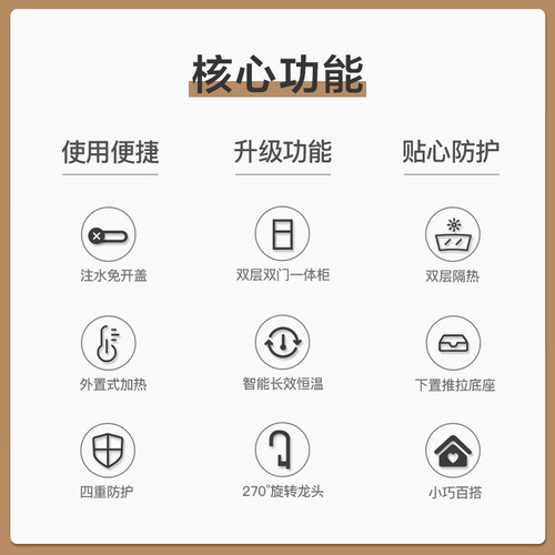 长效保温,水温适宜随时饮用,自由畅享温热水。手动旋转水龙头,使用更加灵活方便,减少局限性。