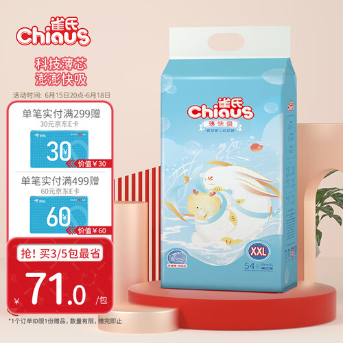 快速瞬吸面层,能够迅速吸收尿液,令宝宝肌肤保持干爽清新状态,搭配立体裁剪设计,弹性良好与肌肤贴合更紧密。