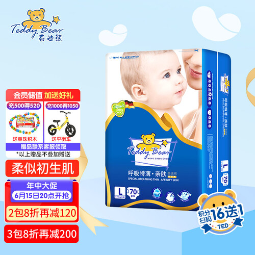 专为宝宝娇嫩肌肤设计的纸尿布,天丝底膜有数万微透气孔设计。内含葡萄型多面性高分子,接触尿液面积广,吸收速度快。