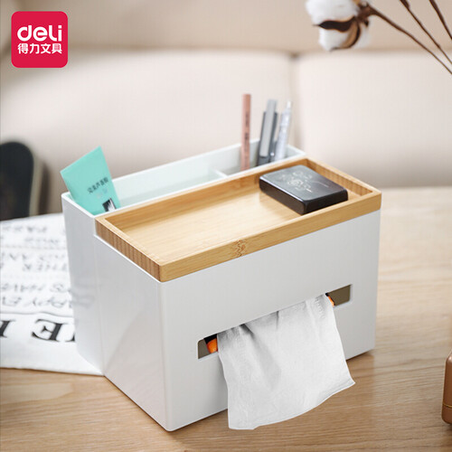 竹塑结合材质制作而成,拥有更加简约时尚的外表,摆放在桌上点缀室内空间。设有储物隔间,可以存储不同物品。