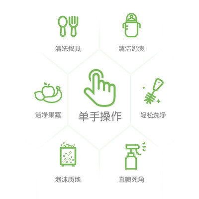 泡沫直喷式设计,精准直达污渍,无需搓泡,清洁更到位,植物性洗净,温和不伤手,食品级成分,材质安心,一瓶多用途,方便实用。