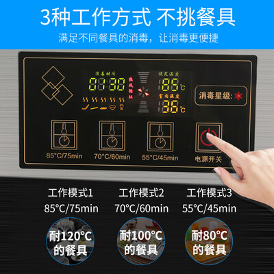 中温消毒,不挑餐具,适用于所有餐具类型。热风循环,立体消毒。大容量设计,轻松满足大量的餐具存放。