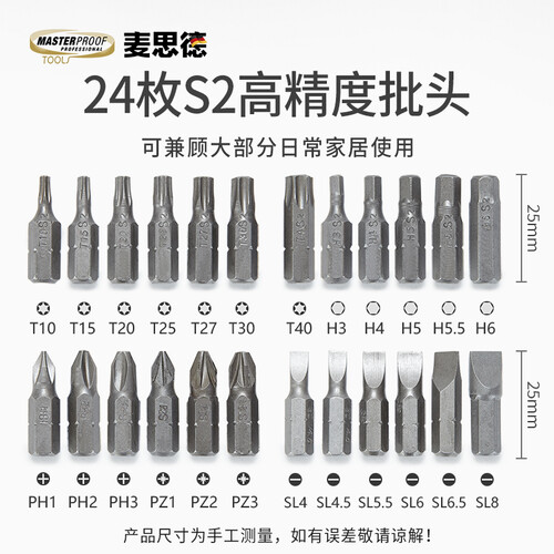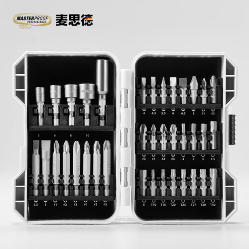 磁力吸附螺丝批头,连接稳固不晃动,使用过程中避免发生打滑危险。采用37枚组合设计,日常实用性强,满足更多使用需求。