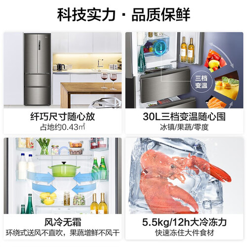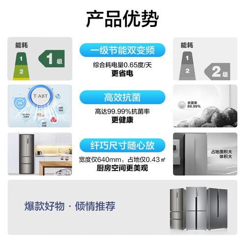 纤薄体积设计,占地不到半平方,嵌入橱柜更好看,双层冷冻抽屉,各种美食分开摆放,雪糕沾不上海腥味。