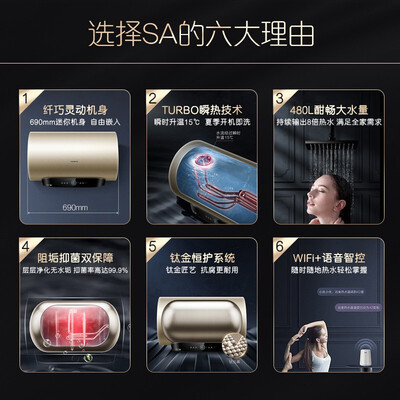 搭载钛金恒护系统,能够长时间使用,不易被腐蚀。8倍大水量,无惧全家接力洗,可减少水垢生成,内胆更干净。