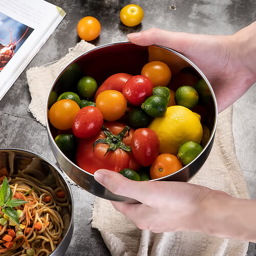 选用304食品级不锈钢材质,安全卫生,而且稳固耐用更能防摔。双层真空的隔热设计,即使碗内温度再高,也不用担心烫手。
