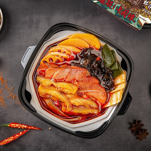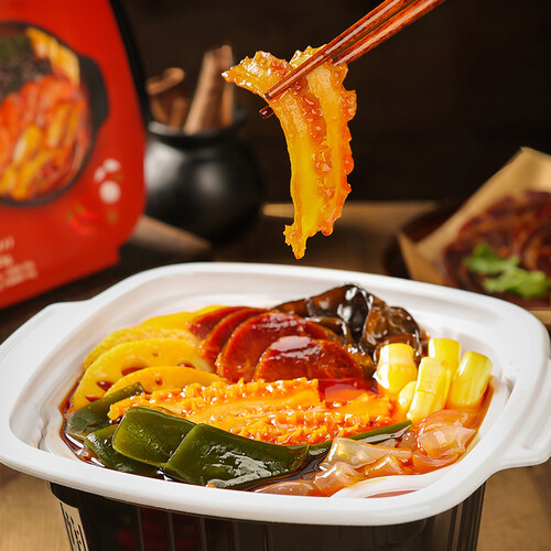 选用秘制底料,爽辣可口,让你不出门就可以吃到纯正的火锅。盒子采用PP材质,不会出现变形,可以放心食用。