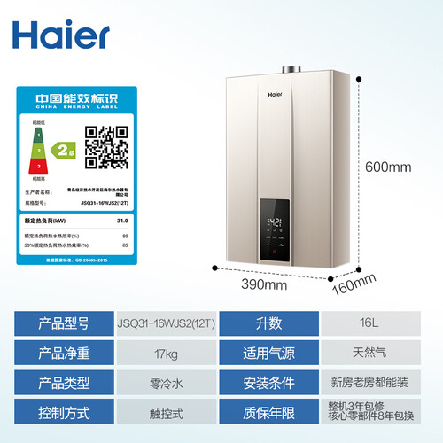 海尔 三管零冷水燃气热水器