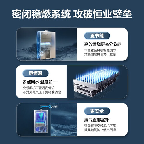 专业三管零冷水,热水更快更澎湃,快速赶走疲劳,身体更放松。密闭式燃烧结构,燃烧更充分,使用更安全。