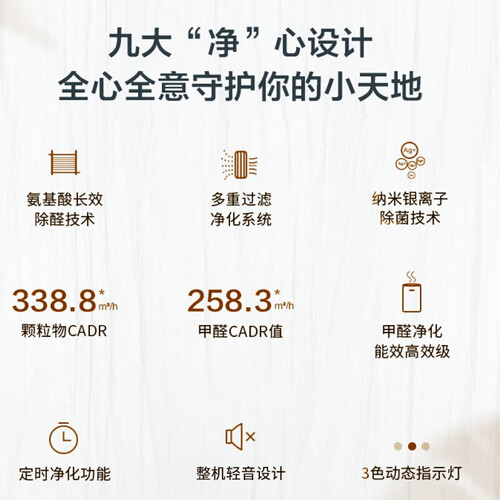 氨基酸强效除醛技术,反应全程无毒无味,不生成有害物质,呼吸很安全,多个进风口加速空气对流,可以吸附更多污染物。