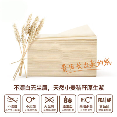 甄选天然小麦秸秆制造,天然轻柔无尘屑,敏感肌肤使用不过敏。抽取式设计,方便日常使用。